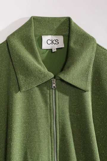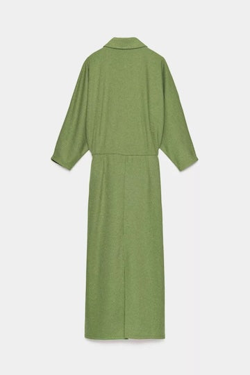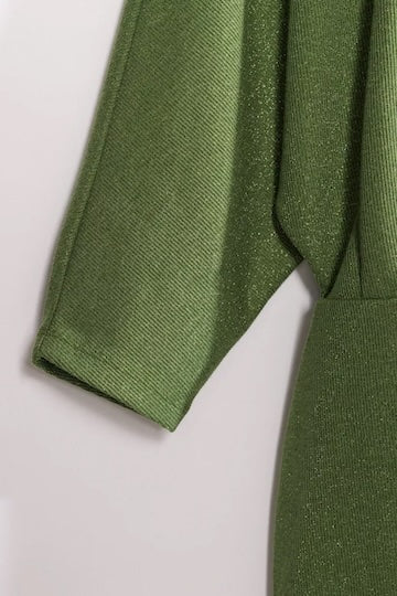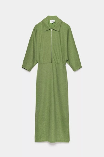Groene polo-jurk met glitters als detail. Dieze jurk is ontworpen met een hemdkraag met rits, halflange vleermuismouwen en een rechte rok. Of je deze must-have nu naar kantoor of voor een feestje draagt: dit item stelt nooit teleur.