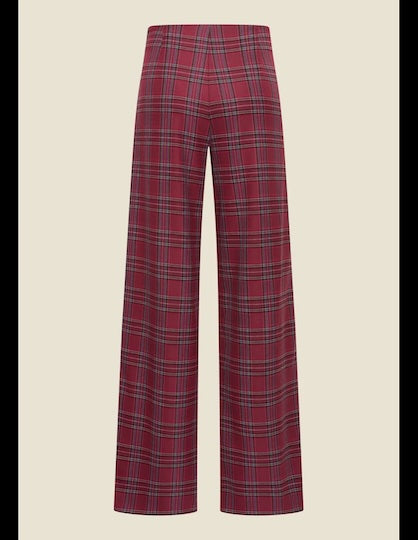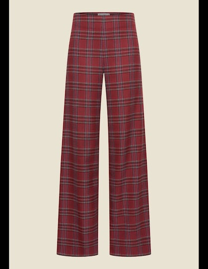 De Marlene Pants is een stijlvolle high waisted pantalon. Sluit hoog in de taille en heeft rechte pijpen. De pantalon is gemaakt van een stevige, rijke stof met een ruit-patroon. De broek heeft een blinde rits aan de zijkant.