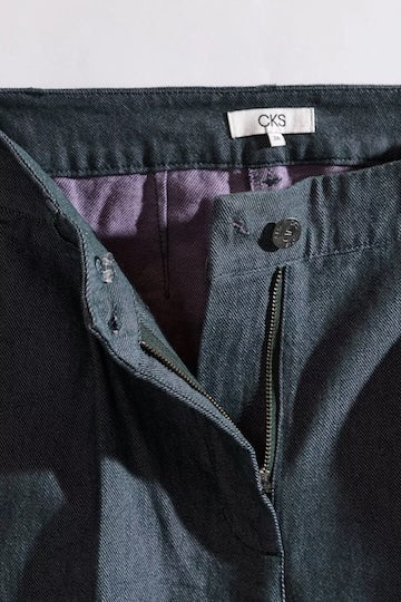 Not your average denim! Deze two tone denim, jeansbroek heeft een hoge taille en wijde broekspijpen. De zakken worden gecombineerd met plooien aan de voorzijde voor een verfijnde look. Combineer hem makkelijk met een sweater of trui, of ga voor een T-shirt met lange mouwen en blazer.